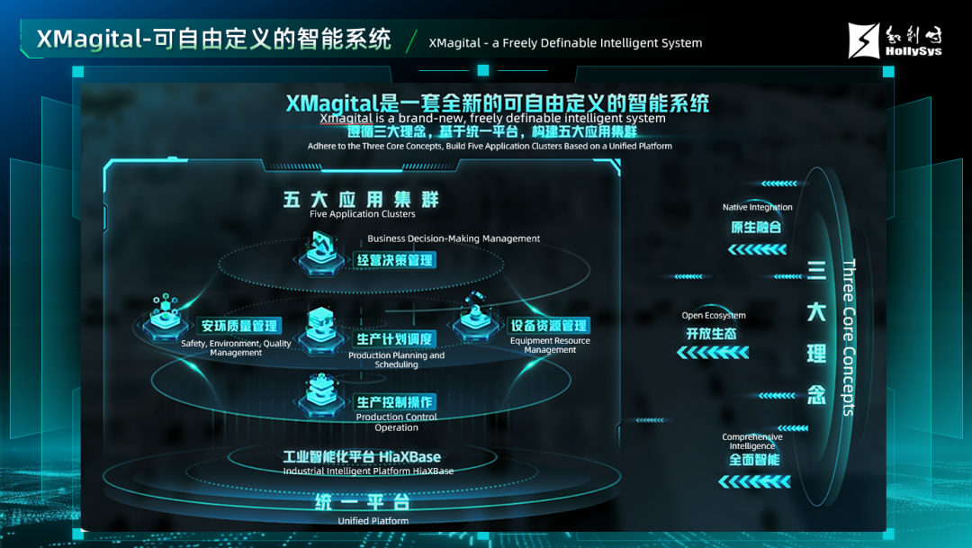 作为和利时深耕数智化转型的核心成果,XMagital可自由定义智能系统遵循"原生融合、开放生态、全面智能"三大核心理念,基于统一技术平台,实现生产控制操作、生产计划调度、设备资产管理、安环质量管理、经营决策管理五大应用集群的自由定义与灵活配置。该系统的核心价值在于打破传统工业领域"自动化与信息化割裂"、"系统绑定式合作"的行业痛点:一方面,通过大数据、工业大模型、AI技术的深度融合,重构工业生产全场景智能应用,释放效率倍增价值;另一方面,支持企业按需定制、灵活部署,助力用户快速响应业务升级需求,真正构建起 "技术 - 产品 - 生态" 三位一体的AI落地能力,为工业企业打造"未来核心竞争力"提供技术底座。