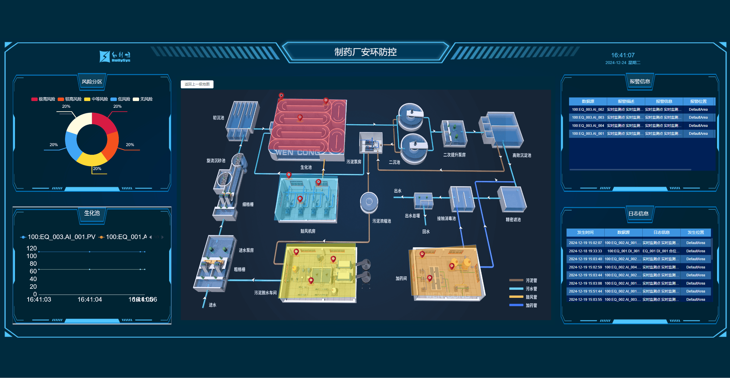 智能安环防控预警系统,**SEPS-EWS**(Smart Environmental and Safety Prevention and Early Warning System),旨在通过实时监控工厂环境中的关键监测点,并根据监测点的数据变化进行智能分析,以识别潜在的安全风险区域。系统通过对厂区进行分区,并在每个区域内设置监测点,当监测点的数据超过预设阈值时触发告警。如果某一区域内的告警点数量超过一定比例,则判定该区域为风险区,并根据风险度R值的大小划分为红色、黄色、橙色、蓝色四个等级。